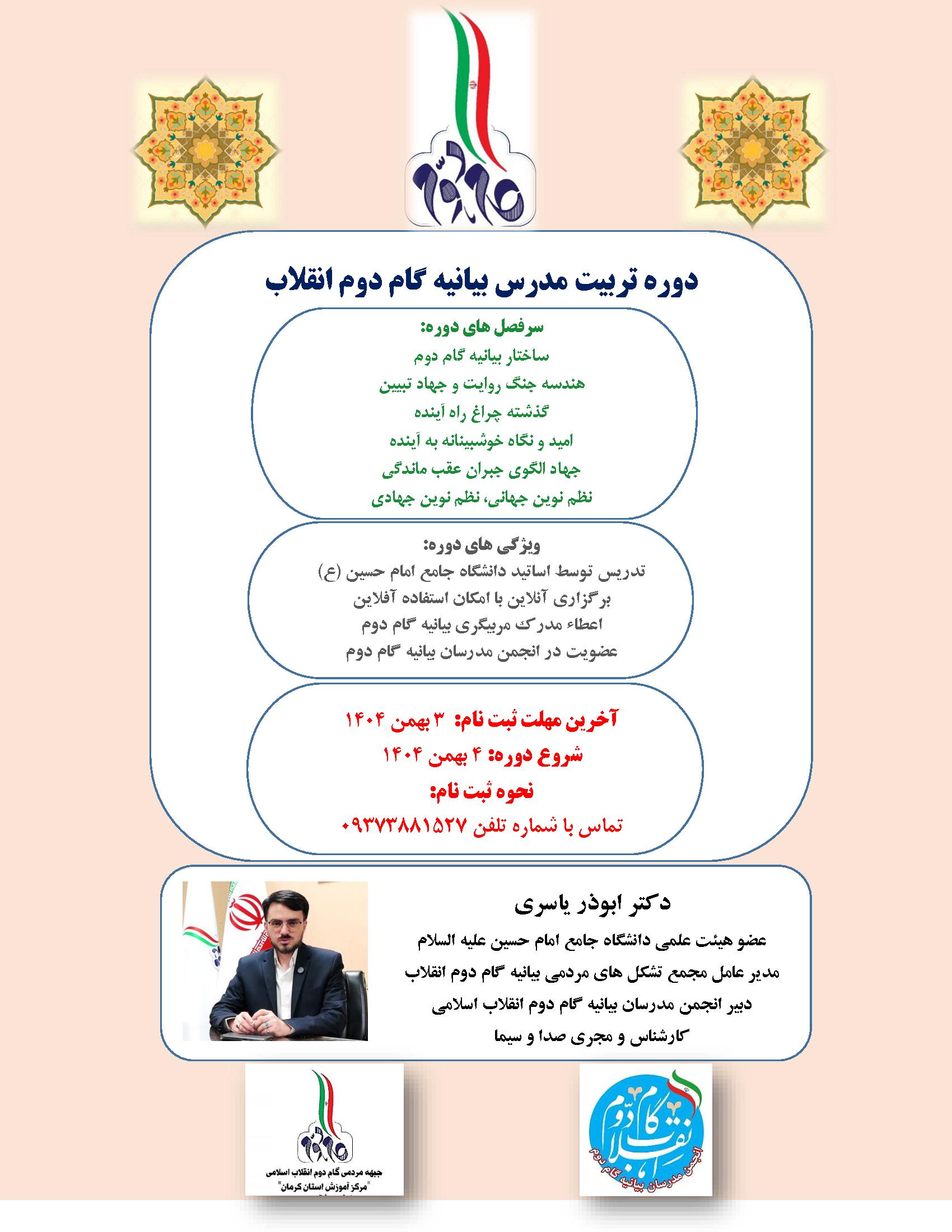 1504 اعلام نتایج مسابقه غیر حضوری " بیانیه گام دوم " استان کرمان مرکز آموزش